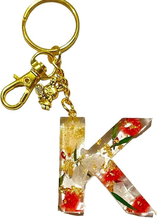 Alphabet Initial Letter Keychain Charm, Pendant Tassel Key Ring for Purse, Handbags, Bookbags, Customizable (Flower Red, Resin) quantity