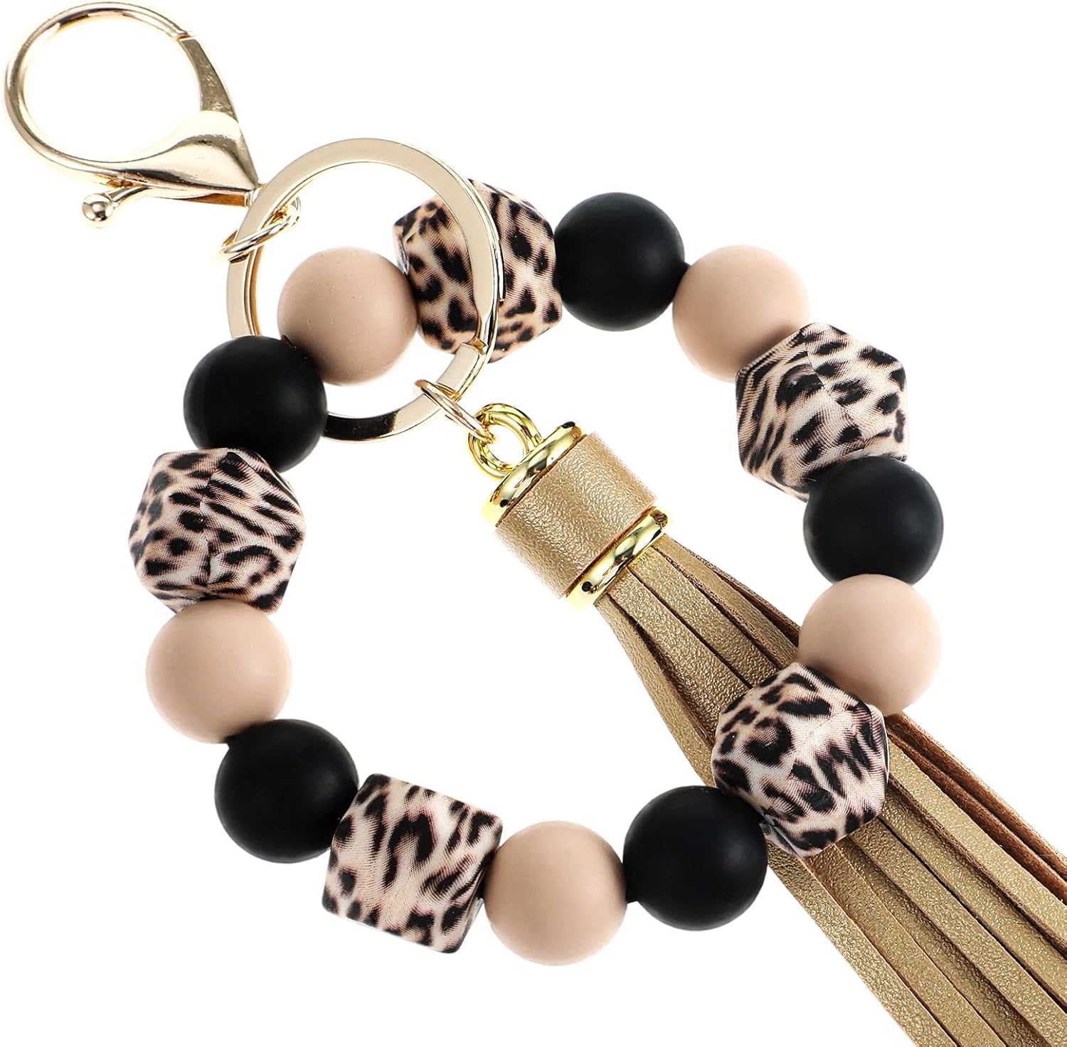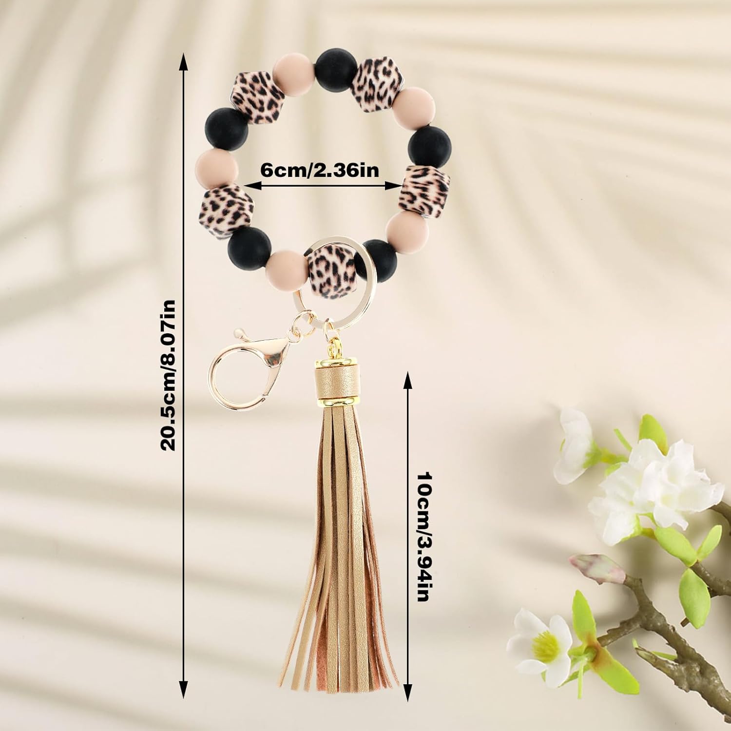 - Size And Color: The beaded keychain wristlet measures 8.07 inches (20.5 cm) with a leopard pattern and PU tassel, offering a stylish accessory for any outfit